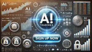 DALL·E 2025-03-13 06.03.06 – A promotional digital graphic for AI trading updates. The image features a sleek, modern design with the text ‘AIトレードの最新情報を無料で受け取ろう!’ prominently disp X Facebook はてブ Pocket LINE コピー 2025.03.13