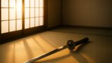 功山寺の山門に夜明けの光が差し込む中、彼らは静かに刀を抜きました。